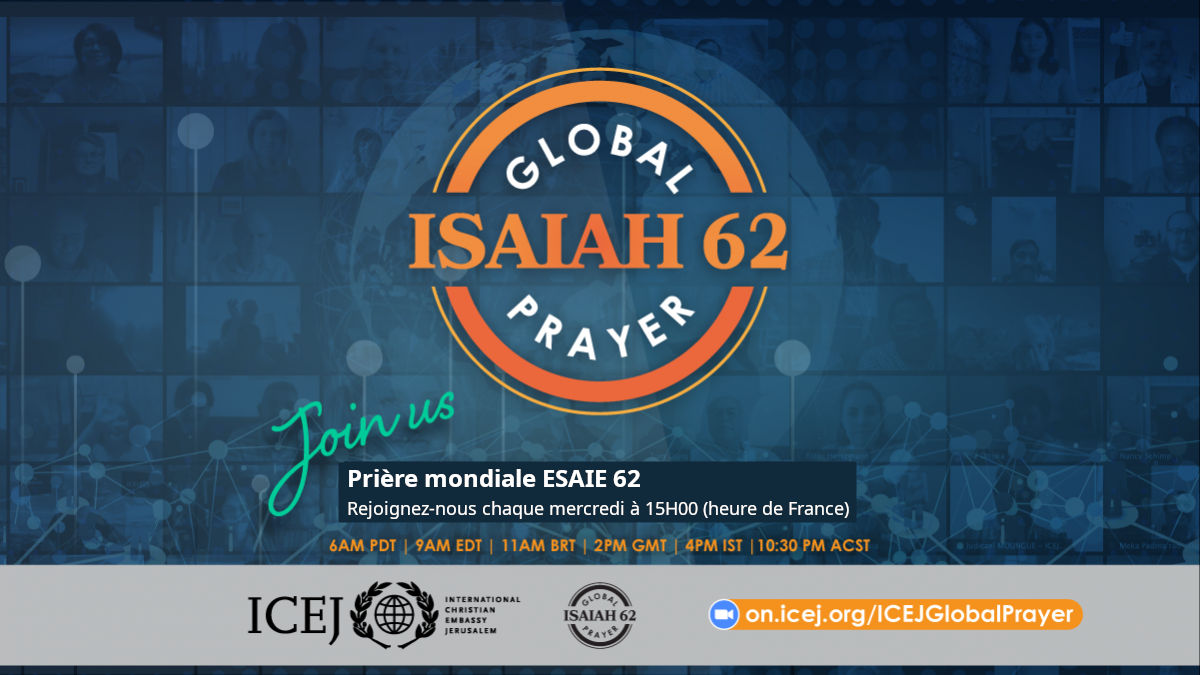 Au cours des derniers mois, des milliers d'intercesseurs du monde entier se sont joints à notre Rassemblement Mondial de Prière Esaïe 62 hebdomadaire en ligne sur Zoom. Ces moments de prières communs ont été une véritable source de force et d'encouragement pour nous à l'ICEJ pendant ces jours difficiles, et beaucoup de personnes nous ont dit la même chose.